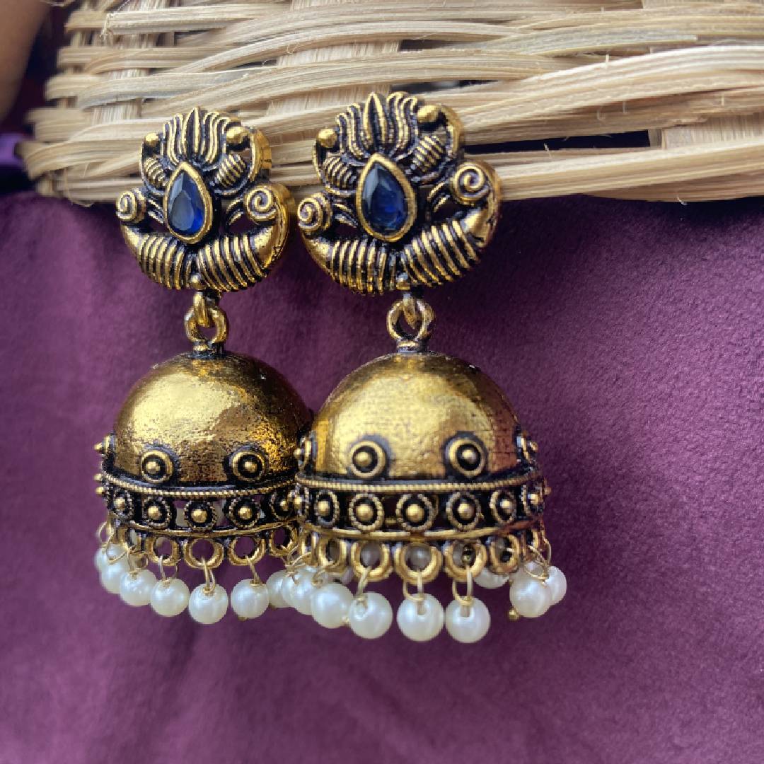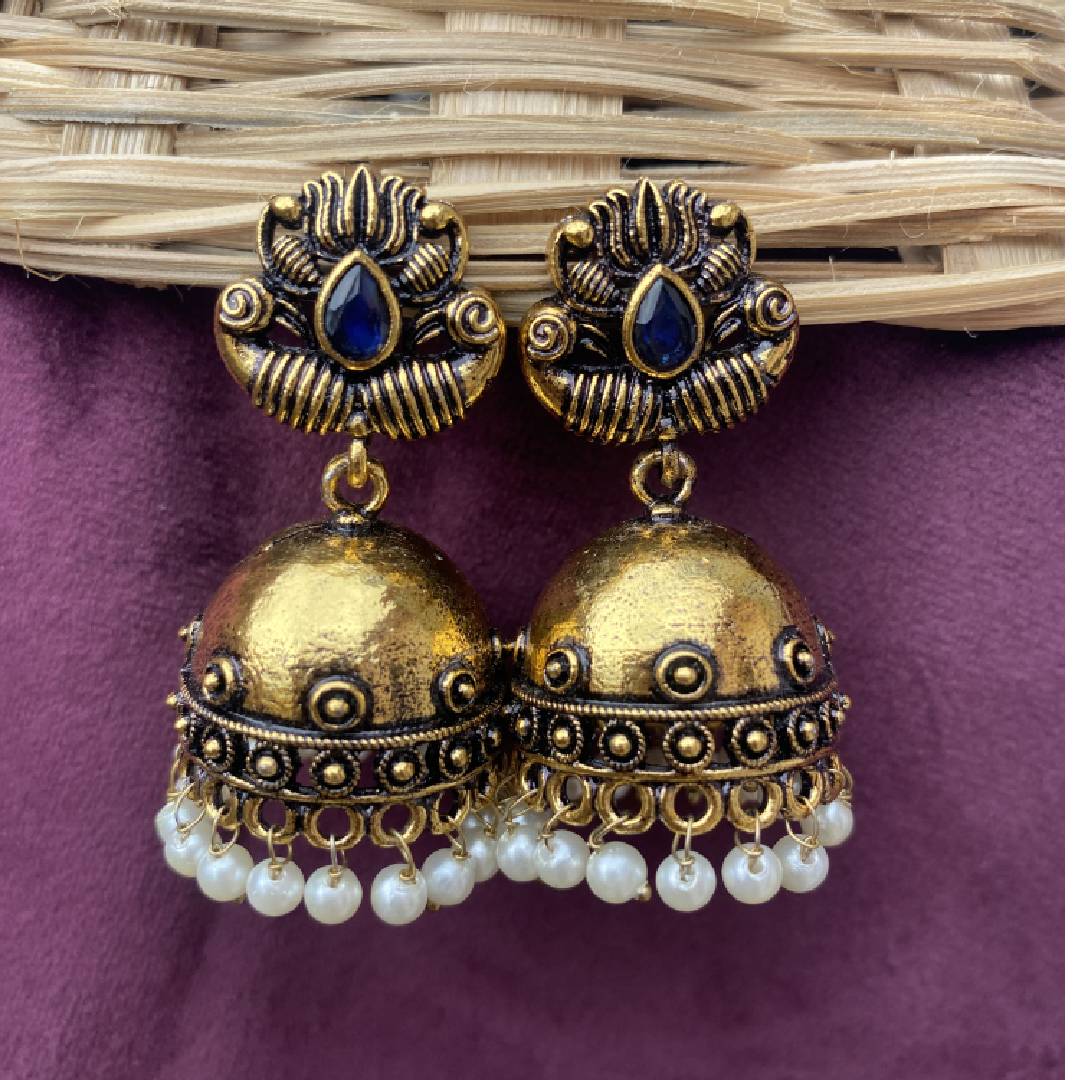 Aadhya Pearl Jhumka Navy Blue